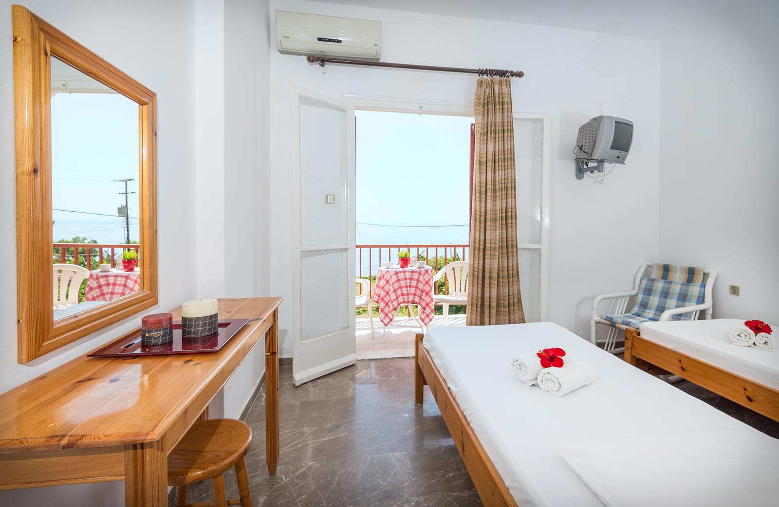 All rooms feature single or double beds, furnished balcony or veranda with beautiful sea views, TV, air conditioning and WiFi internet access. There is a cleaning service every 2-3 days(depends schedule), and sheets/towels are changed every 3 days. Pets are allowed upon request and discussion with the management.